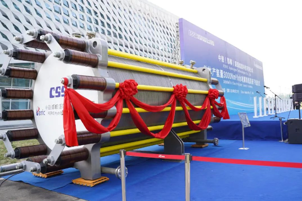 該裝備圍繞我國氫能高質(zhì)量發(fā)展重大需求,突破了大功率、高電密、寬負(fù)載、低電耗等多項前沿技術(shù),實現(xiàn)了單體產(chǎn)氫量由2000Nm3/h到3000Nm3/h的跨越,運行電流密度提升17%,槽體重量降低13%,制氫系統(tǒng)具備30%-110%的動態(tài)調(diào)節(jié)能力,能耗達(dá)到國標(biāo)一級能效標(biāo)準(zhǔn),可顯著提高單機(jī)產(chǎn)能、降低生產(chǎn)投入和運行成本,為大規(guī)模綠氫制取提供了創(chuàng)新型解決方案。