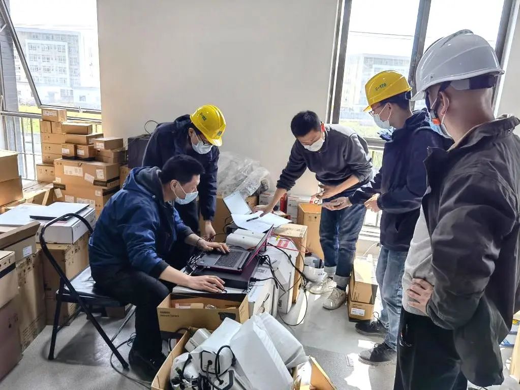 七一六所黨委副書記、所長顧浩接到任務(wù)后立即組織研究部署,克服連云港本地疫情的重重困難,迅速在當(dāng)?shù)丶Y(jié)專業(yè)隊(duì)伍,同時組織在滬所屬單位抽調(diào)精兵強(qiáng)將,聯(lián)合集團(tuán)公司在滬兄弟單位,組成弱電安防施工團(tuán)隊(duì),分批上島集結(jié)開展工作。