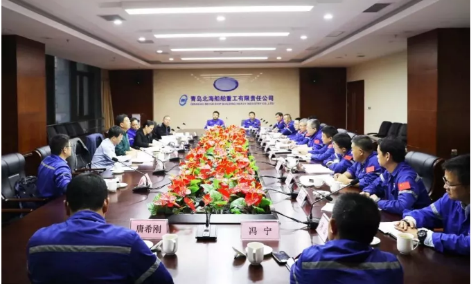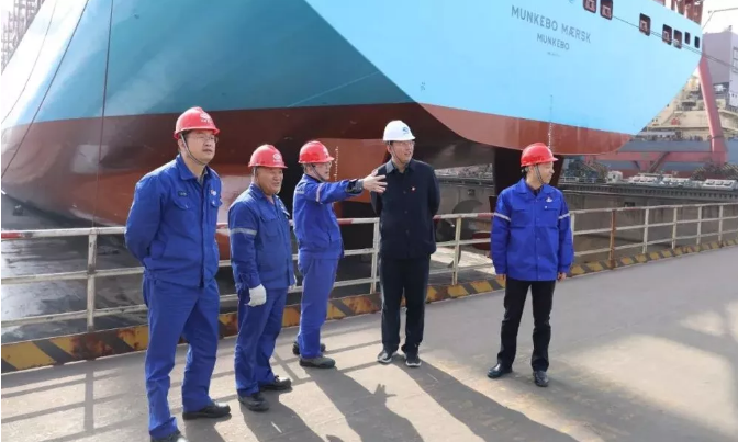 調(diào)研期間,楊磊實(shí)地考察了北船重工青島武船、造船碼頭、聯(lián)合廠房、修船分廠、造船大塢,了解了北船重工發(fā)展歷程、生產(chǎn)經(jīng)營情況、黨建工作情況以及主題教育開展情況,并參加了北船重工領(lǐng)導(dǎo)班子主題教育調(diào)研成果交流會(huì)。