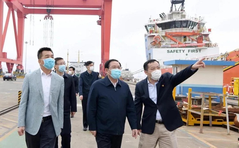 上海市委書記李強調研中國船舶外高橋造船海工公司