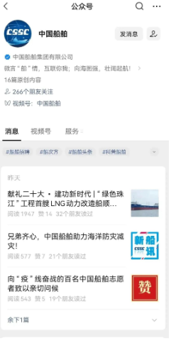 第一步點(diǎn)擊中國(guó)船舶頭像,進(jìn)入下方頁(yè)面