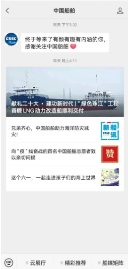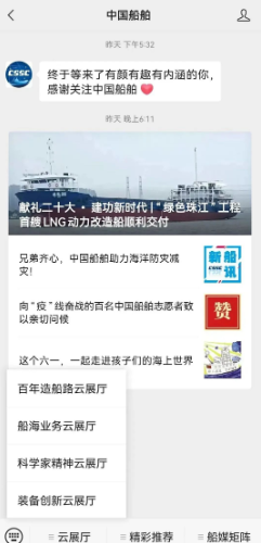近日,中國(guó)船舶集團(tuán)四大云展廳入駐集團(tuán)公司微信公眾號(hào)。