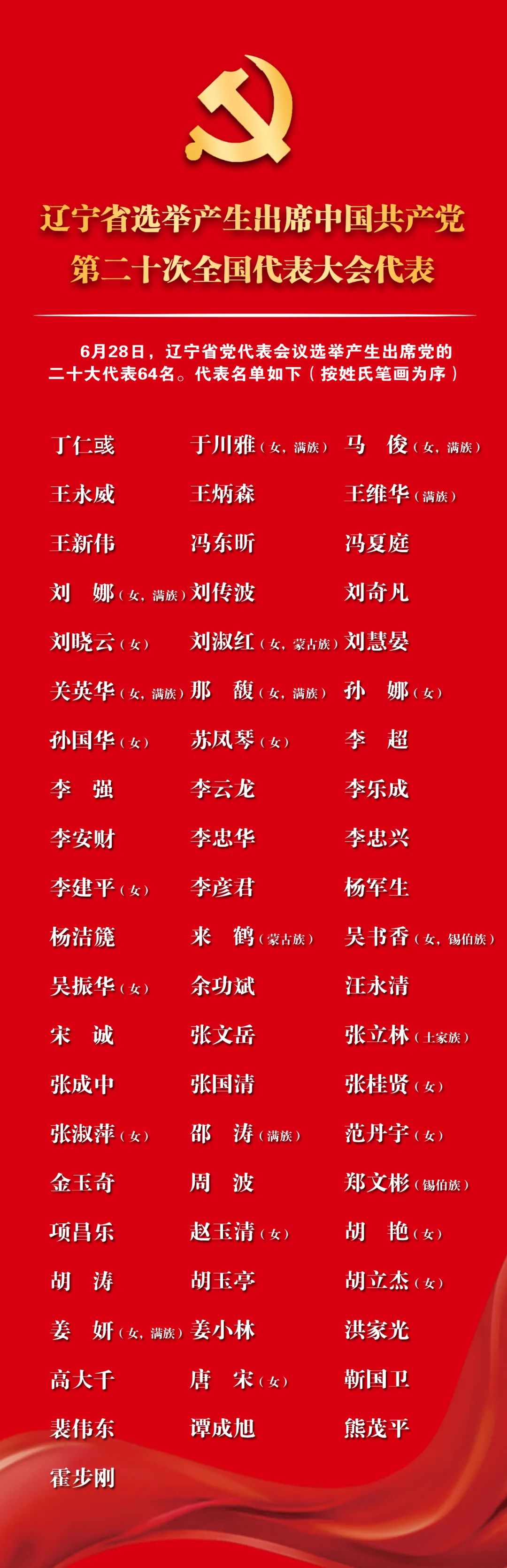 6月28日,遼寧省黨代表會議選舉產生出席黨的二十大代表64名。中國船舶集團學科帶頭人、大連船舶重工集團有限公司副總工程師關英華被選舉為遼寧省出席中國共產黨第二十次全國代表大會代表。