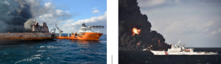 “深潛”號與“海巡01”船在“桑吉”號救援現場