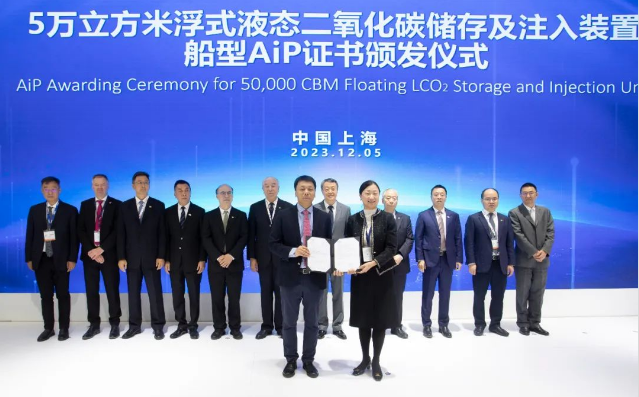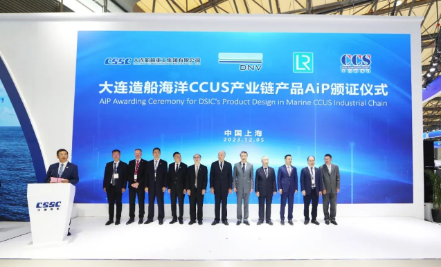 在展會現場,辛國斌、溫剛等參觀了集團公司展臺,并共同見證了中國船舶集團與法國GTT公司簽訂2023版諒解備忘錄(MOU)、大連造船海洋CCUS產業鏈產品頒證、5萬立方米浮式液態二氧化碳儲存及注入裝置船型AIP證書頒發儀式、2萬及1.2萬立方米液態二氧化碳運輸船船型AIP證書頒發儀式。