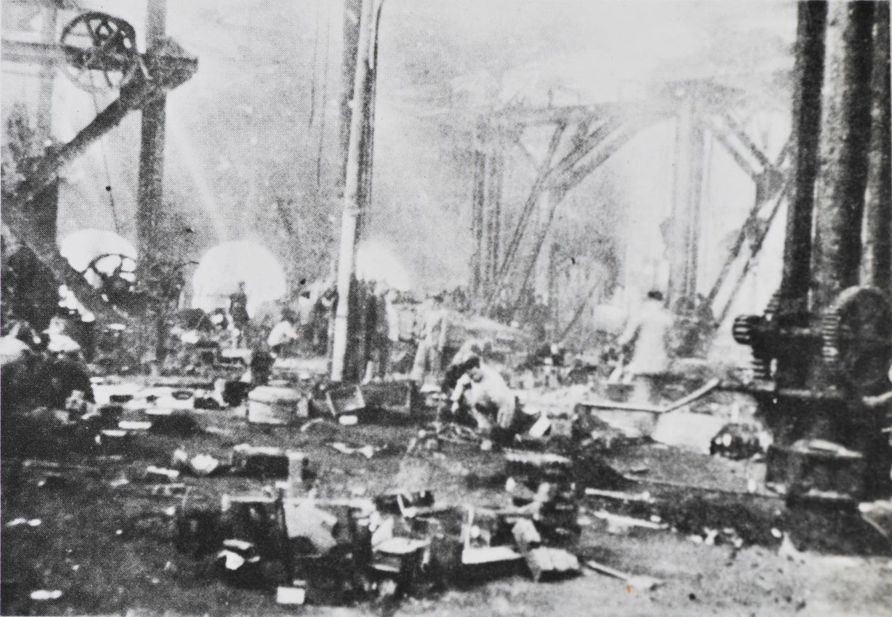 1949年5月上海,雖然江南造船所經(jīng)歷了英勇的護(hù)廠斗爭(zhēng),但此時(shí)的船塢、廠房、設(shè)備,均已遭受到嚴(yán)重的破壞。
