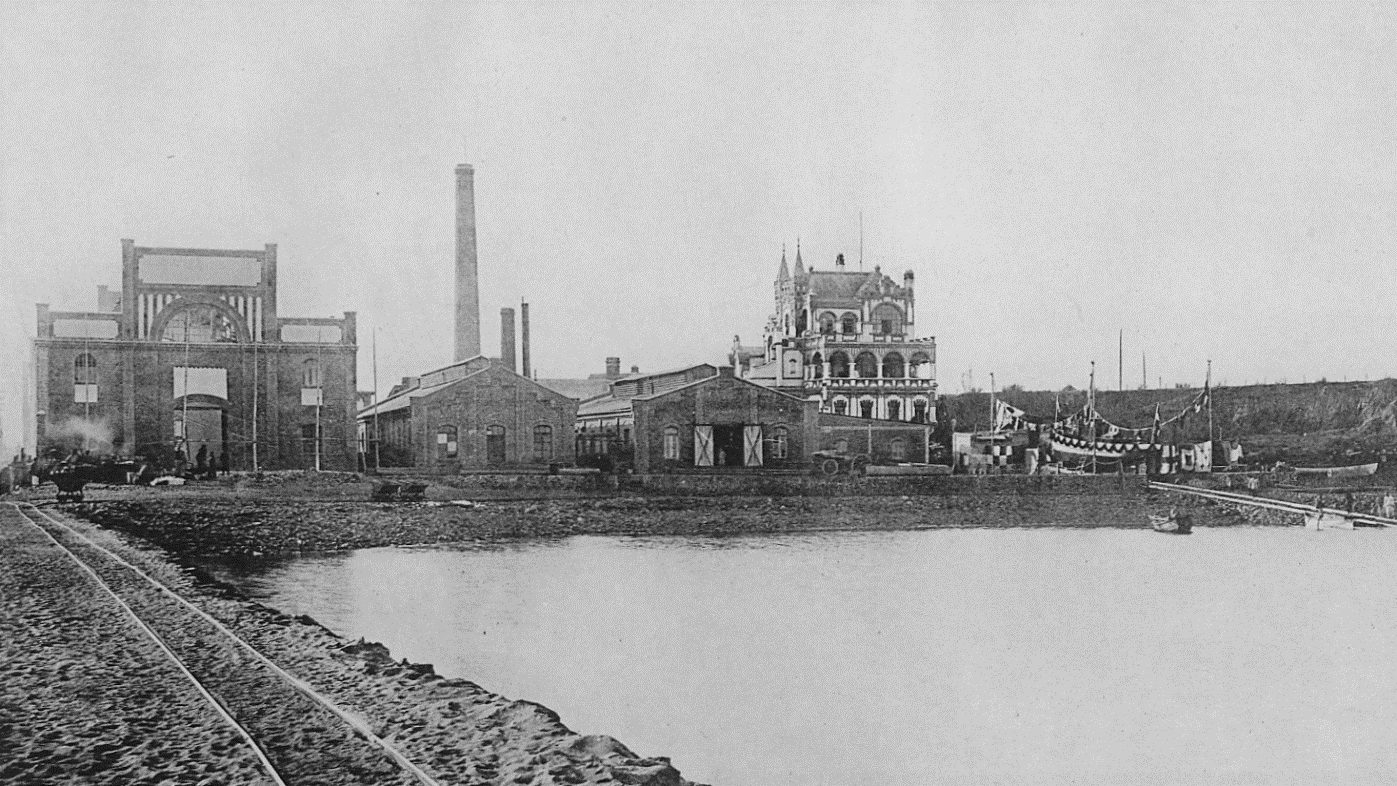 1905年青島,1905年,船廠造出了被譽(yù)為“青島之自豪”的1.6萬(wàn)噸“亞洲第一大浮船塢”和“東亞細(xì)亞第一大機(jī)器”——150噸起重機(jī)。