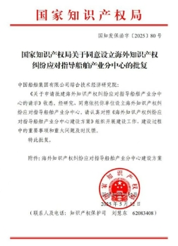 近日,由中船集團所屬中船綜合院(集團公司知識產權中心)申報的海外知識產權糾紛應對指導船舶產業分中心,獲得國家知識產權局批準設立。截至目前,該中心是國家知識產權局在全國設立的第五家產業分中心,也是船海產業領域唯一一家分中心。該中心的設立,為船舶企業“走出去”提供全鏈條知識產權保障,助力船舶產業在海外市場中更好應對知識產權挑戰。