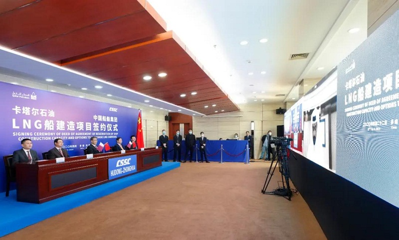 ????2019年4月22日,卡塔爾石油委托其子公司卡塔爾天然氣公司就“百艘LNG船計(jì)劃”進(jìn)行招標(biāo)。中國(guó)船舶集團(tuán)高度重視、精心準(zhǔn)備、積極溝通,組織旗下滬東中華聯(lián)合中國(guó)船舶工業(yè)貿(mào)易有限公司(CSTC)全力推進(jìn)各項(xiàng)競(jìng)標(biāo)工作。經(jīng)過(guò)一年的不懈努力和先后四輪談判,中國(guó)船舶集團(tuán)最終在激烈的國(guó)際競(jìng)爭(zhēng)中勝出,為卡塔爾石油建造下一代LNG船,彰顯了中國(guó)船舶集團(tuán)在高端海洋裝備領(lǐng)域的強(qiáng)大實(shí)力。此次簽約也將為中國(guó)船舶集團(tuán)完成全年目標(biāo)任務(wù)奠定堅(jiān)實(shí)基礎(chǔ)。