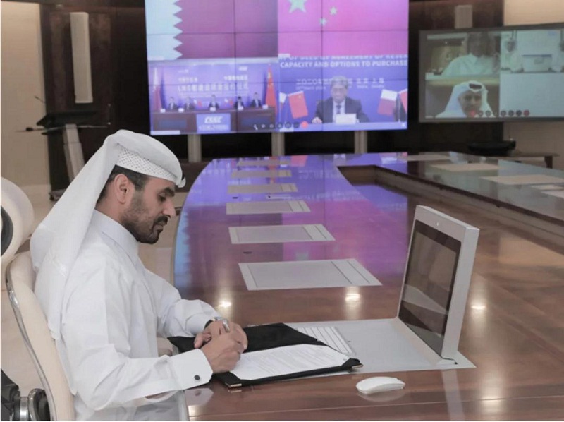 ????雖然全球疫情持續(xù)蔓延,但“一帶一路”建設(shè)的步伐并未停滯。4月22日,中國(guó)船舶集團(tuán)有限公司與卡塔爾石油公司在中國(guó)北京、上海及卡塔爾多哈三地以“云簽約”方式聯(lián)合簽署“中國(guó)船舶—卡塔爾石油液化天然氣(LNG)船建造項(xiàng)目”協(xié)議,所涉訂單總金額超過(guò)200億元人民幣。這是卡塔爾天然氣項(xiàng)目首批訂單,也是中國(guó)船企迄今承接的金額最大的造船出口訂單。中國(guó)船舶集團(tuán)董事長(zhǎng)雷凡培、卡塔爾能源事務(wù)部長(zhǎng)兼卡塔爾石油總裁薩阿德?謝里達(dá)?阿爾卡比出席簽約儀式并分別代表雙方在協(xié)議文本上簽字,中國(guó)船舶集團(tuán)副總經(jīng)理孫偉主持簽約儀式,卡塔爾天然氣公司首席執(zhí)行官卡利德?阿爾?塞尼、卡塔爾石油商務(wù)開(kāi)發(fā)執(zhí)行副總裁賈西姆?阿爾馬拉祖齊等出席簽約儀式。