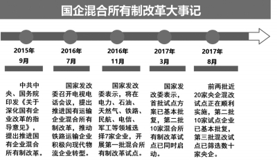 目前,前兩批近20家中央企業(yè)混改試點正在順利實施,第二批10家試點企業(yè)已基本批復,第三批混改試點已篩選數(shù)十家央企,石油、天然氣領(lǐng)域混改試點也將在第三批試點中統(tǒng)籌推進。據(jù)悉,在第三批混改試點中,除了繼續(xù)選擇部分中央企業(yè)納入試點范圍外,還將遴選一部分地方國有企業(yè)納入試點。