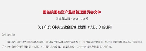 中央企業合規管理指引(試行)
