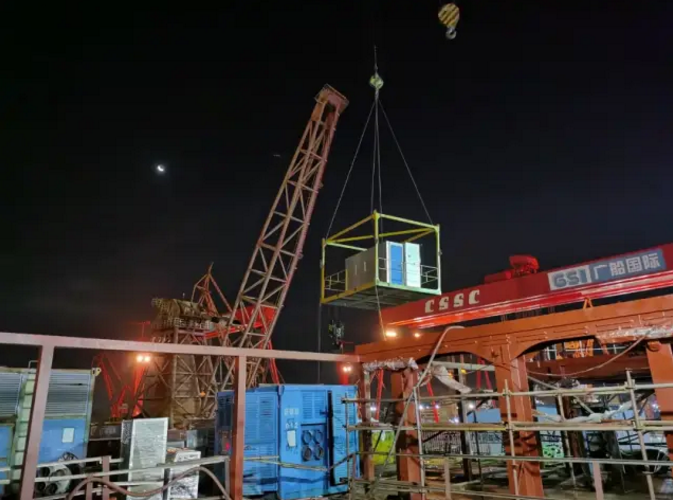 就在交船同一天,廣船國際在建的阿爾及利亞客滾船最后一個預(yù)制艙室單元完成吊裝進艙,標(biāo)志著全船共360個預(yù)制艙室單元全部按計劃節(jié)點完成進艙定位,比原計劃提前了整整10天。