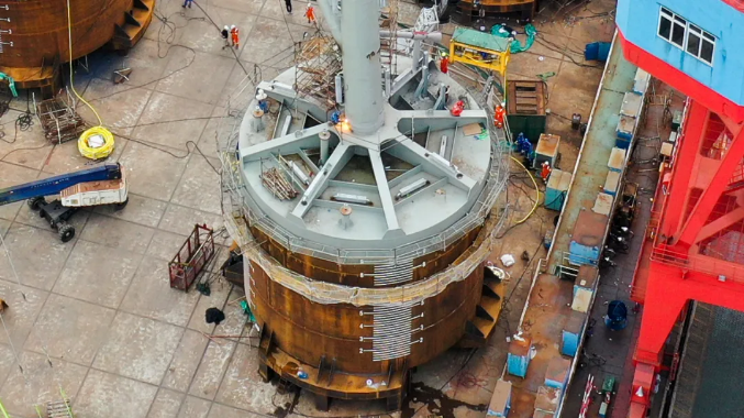 7月31日,廣船國際建造的我國第一臺吸力筒導(dǎo)管架風機基礎(chǔ),在廣州南沙成功發(fā)運。吸力筒導(dǎo)管架是海上風電場的基礎(chǔ)設(shè)備,這次交付的吸力筒導(dǎo)管架總高63米,足有20層樓的高度,總重量約為1560噸,相當于15輛重型卡車滿載的重量,由3個直徑約為13米、高約11米的吸力筒和高52米的上部導(dǎo)管架組成。