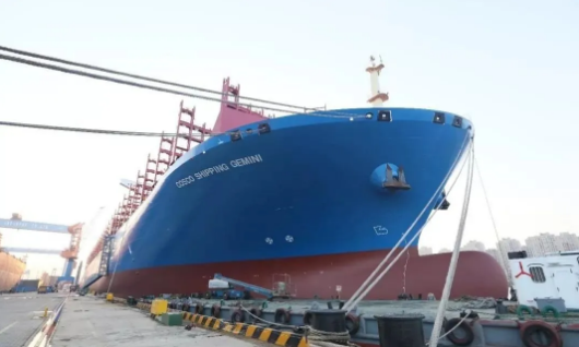 4月10日,大船集團(tuán)為中遠(yuǎn)海運集團(tuán)建造的20000TEU超大型集裝箱船“中遠(yuǎn)海運雙子座”命名交付,刷新了當(dāng)時中國建造交付最大集裝箱船的紀(jì)錄。