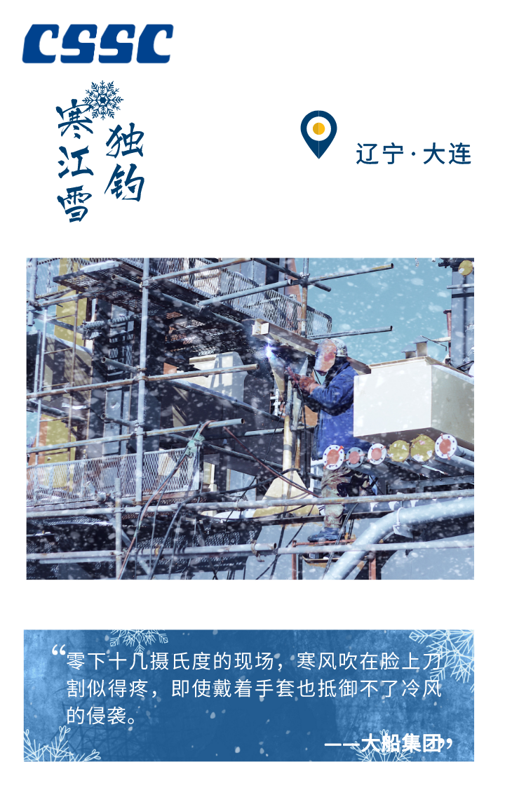 -5℃、-10℃、-20℃ …… 在這個不斷刷新寒冷指數(shù)的冬季 從未缺席中國船舶人勞作的身影 皎潔的白雪、火紅的爐膛 呼嘯的海風(fēng)、疾行的足音 奏響了冬季船舶人的 冰與火之歌