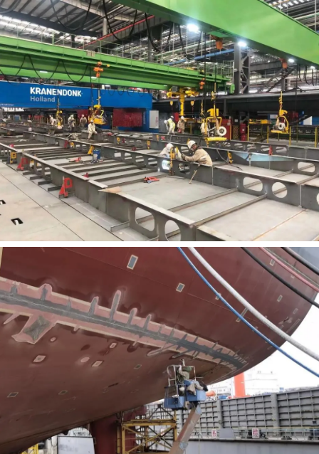 安環(huán)保衛(wèi)部安保消員工堅守崗位,保障大型郵輪作業(yè)安全;集配部碼頭鋼板抓緊卸貨,全力保障生產(chǎn);制造二部400余名員工投入大型郵輪薄板分段建造;涂裝部800余名員工對大型郵輪/民船關鍵項目進行涂裝;搭載部1300余名員工堅守崗位保證船塢節(jié)點;總裝一部400余人圍繞止鏈器/艙口圍導軌安裝等開展生產(chǎn),總裝二部對大型郵輪總段扣壓管穿艙件進行焊接;生產(chǎn)保障部開展大型郵輪臨時電力系統(tǒng)新式電箱改造。