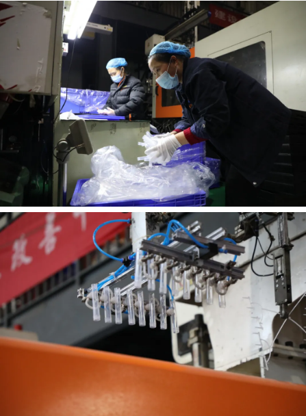 為保障防疫物品供應,春節(jié)期間,前衛(wèi)公司精密模塑產(chǎn)業(yè)生產(chǎn)車間24小時不停機。各機臺滿負荷運轉,每天生產(chǎn)咽拭子棉簽棒1000萬支,一次性保存管70萬支,為全國核酸檢測能力的提升提供了強有力的保障。