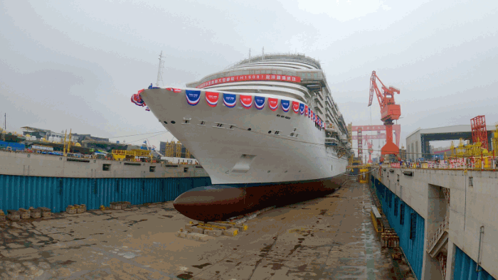 2021年12月17日,由中國船舶集團旗下外高橋造船建造的中國首制大型郵輪順利實現(xiàn)塢內(nèi)首次起浮里程碑節(jié)點,宣告結(jié)構(gòu)和舾裝建造的“上半場”圓滿收官!