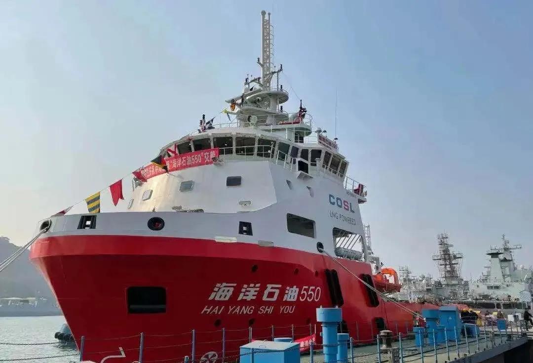 △ “海洋石油550”號(hào)的全船電力系統(tǒng)和推進(jìn)系統(tǒng)均由七〇四所供貨,其交付代表著中國海上油氣田第一次出現(xiàn)了新能源船舶。