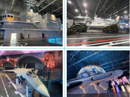 該館面積近7萬平方米,設(shè)有“武庫尋兵”“黃海行動”“凌云挑戰(zhàn)”“星際家園”“飛越火線”海、陸、空、天四大主題5個體驗(yàn)區(qū)共16個大型軍事裝備科技主題游樂項(xiàng)目。