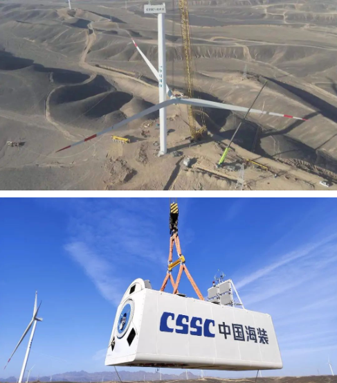 該一體化項(xiàng)目位于全國有名的“百里風(fēng)區(qū)”——新疆哈密市伊州區(qū)十三間房區(qū)域,項(xiàng)目占地面積約231平方公里,是目前哈密市單體裝機(jī)規(guī)模最大的風(fēng)儲一體化項(xiàng)目。共安裝150臺中船海裝H176-6.7兆瓦風(fēng)電機(jī)組和中船風(fēng)帆生產(chǎn)的30萬千瓦/120萬千瓦時(shí)的電化學(xué)儲能裝置。