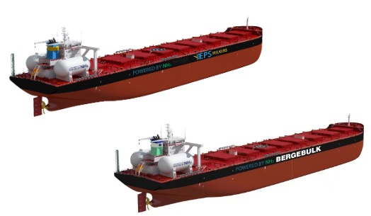 2月28日,北海造船聯(lián)合中船貿(mào)易與新加坡東太平洋航運(yùn)公司(EPS)新簽4艘21萬(wàn)噸Ammonia DF/DF Ready散貨船建造合同;2月29日,北海造船再次聯(lián)合中船貿(mào)易,與新加坡百國(guó)山航運(yùn)公司(Berge Bulk)成功簽署2艘21萬(wàn)噸Ammonia Ready散貨船建造合同。