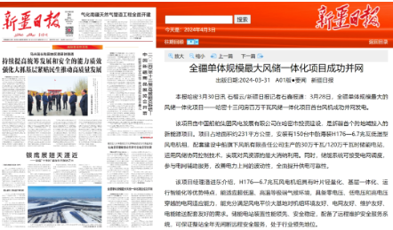 近日,中國船舶集團旗下中船科技子公司中船風(fēng)電和哈密國投聯(lián)合開發(fā)的新疆哈密百萬千瓦風(fēng)儲一體化項目首臺風(fēng)機成功并網(wǎng)發(fā)電,央視《新聞聯(lián)播》、新華網(wǎng)和《新疆日報》等紛紛關(guān)注報道。