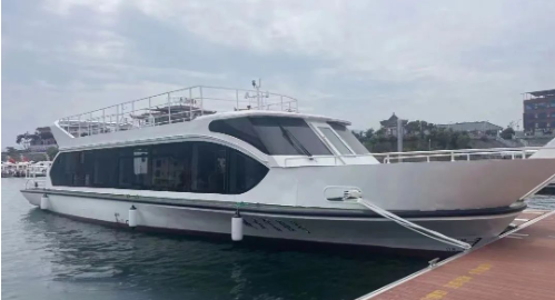 該系列船型由七一二所提供設計及建造一體化解決方案,可用于內河觀光游覽、商務接待、救援等多場景。系列船設計造型新穎,線條簡潔優美,客艙兩側采用大面積玻璃結構,船內透亮,視野開闊;同時搭載了該所自主研發的鋰電池動力系統、信息化系統,具備靈活的操控性能、可靠高效的綠色動力輸出。