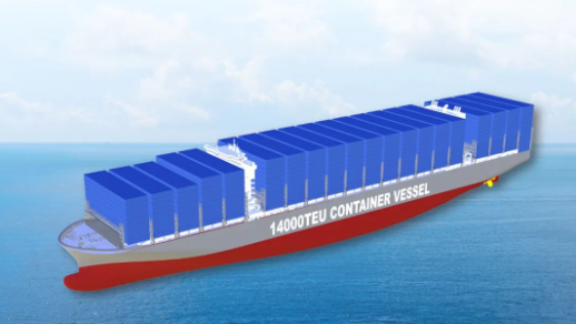 14000TEU甲醇燃料預(yù)留大型集裝箱船總長約336米,型寬 51米,型深30.2米,可裝載14170個(gè)20英尺標(biāo)準(zhǔn)集裝箱。采用最新設(shè)計(jì)理念,在常規(guī)燃料動(dòng)力推進(jìn)系統(tǒng)基礎(chǔ)上,預(yù)留甲醇燃料推進(jìn)方案,可滿足船東后續(xù)綠色燃料改裝的需求。同時(shí),配置脫硫塔及其他節(jié)能裝置,具有綜合能耗低、船舶快速性強(qiáng)和綠色環(huán)保優(yōu)等特點(diǎn),總體性能達(dá)到世界先進(jìn)水平,計(jì)劃于2026至2027年完工交付。