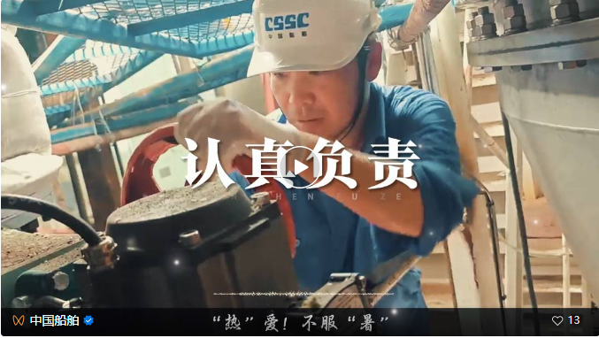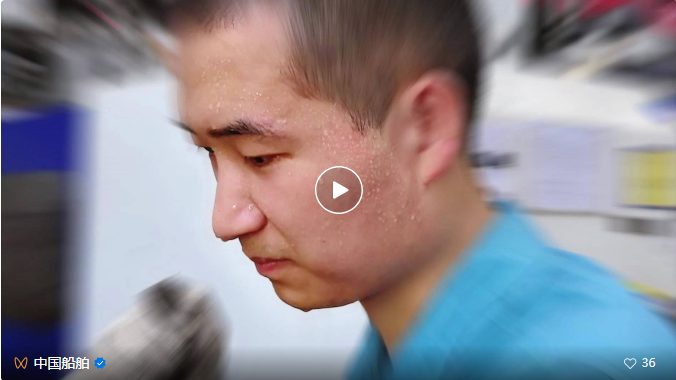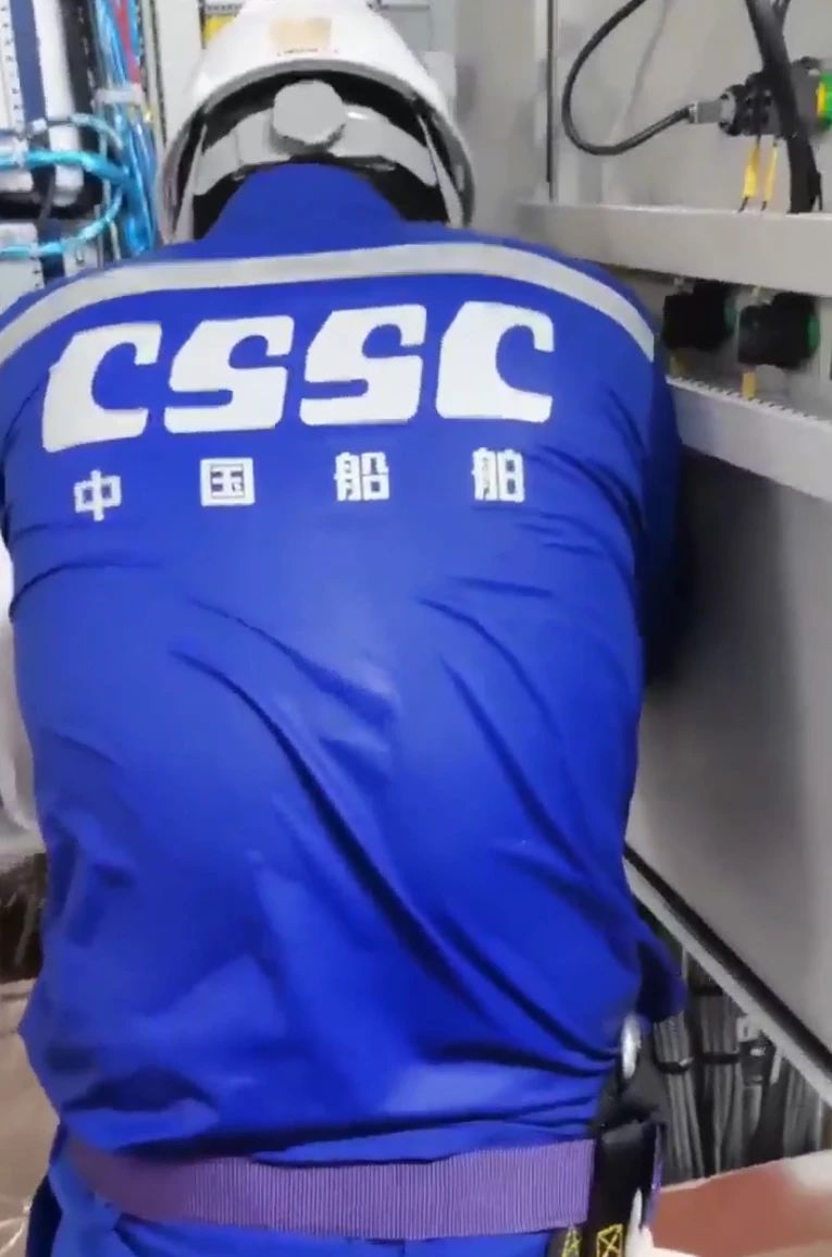中船發(fā)動機——調(diào)試人員頂著高溫在認真安裝傳感器,汗水濕透了衣裳。