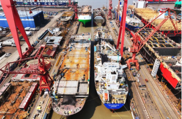 8月11日,中國船舶集團(tuán)旗下江南造船4號船塢迎來一艘99000立方米超大型乙烷乙烯運(yùn)輸船(VLEC)和一艘7800車位汽車運(yùn)輸船(PCTC)出塢 ,一艘99000立方米VLEC半船和一艘7800車位PCTC半船同步起浮,達(dá)成了“PV同步”建造模式的首批次出塢。