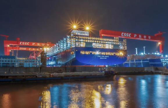 沖刺四季度 |新一代“海上綠巨人”出塢,一次可裝23872個集裝箱