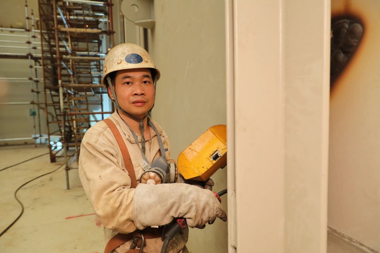 為了更好地掌握超厚板的焊接,搭載一部支持大合攏一班的梁金華和同事們一起進(jìn)行了專門的焊接培訓(xùn)。有趣的是,老師謝祖靠、學(xué)生梁金華,都是來自該所技校的畢業(yè)生。既是師兄弟、又是師徒,這在黃埔文沖的工人隊(duì)伍當(dāng)中并不少見。