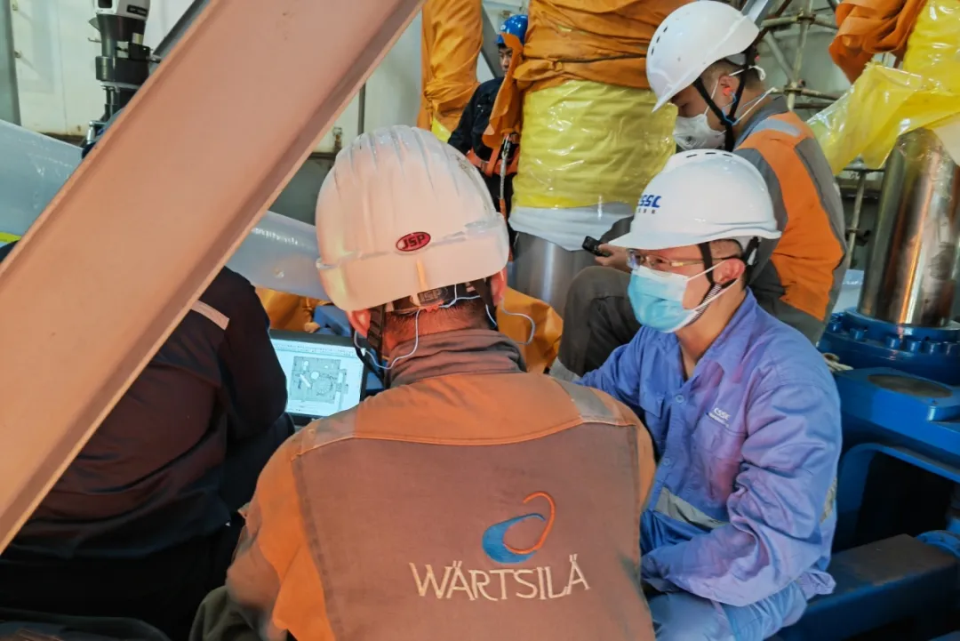 “機艙就像一個大號悶罐!”項目副經理吳澤奇和工程師黃歡在廣州濕熱的天氣和機艙內50℃以上的高溫中,連續通宵作戰,在30天內零差錯完成伸縮推進器的安裝后,又協調其他施工方序時推進主推進器安裝工作。