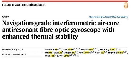 4月14日,中船集團旗下七〇七所和暨南大學等構建的深度合作研究團隊,在國際權威頂級期刊《Nature?Communications》發(fā)表了題為“Navigation-grade interferometric air-core anti-resonant fibre optic gyroscope with enhanced thermal stability”的最新研究成果,實現(xiàn)了空芯光纖陀螺領域的新突破。