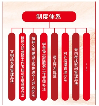 把精神文明建設作為全面推進單位發展的重要保障,與中心工作同謀劃、同部署、同檢查、同落實,通過體系化、制度化、規范化建設,形成“黨委統一領導,文明辦歸口管理,職能部門協同負責,全員共同參與”的工作格局。建立法治誠信建設、行為文明規范、創建考核與評先等管理辦法,形成科學完備的制度體系,推動創建工作科學化、制度化、規范化。