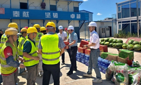 中船國際工程在項目現場開展綜合檢查工作,并向堅守崗位的項目員工及勞務隊伍送上防暑降溫物資,叮囑大家要科學合理安排作業時間,切實做好防暑降溫措施。