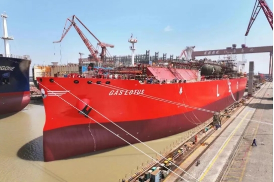 同時出塢的99000立方米超大型乙烷運輸船(VLEC)是該型船2.0版本系列船的第2艘,該船從平臺總段階段實現了機艙三總段的安裝完整性,形成機艙快速成型和舾轉涂的穩定節拍,確保后續碼頭系泊試驗順利開展。