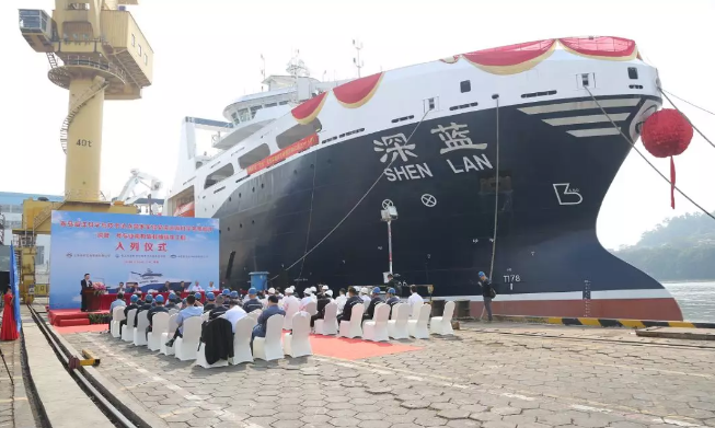 ????11月24日,青島海洋科學與技術試點國家海洋實驗室(以下簡稱“海洋試點國家實驗室”)在黃埔文沖船舶有限公司舉行了我國首艘漁業捕撈加工一體船“深藍號”入列國家海洋實驗室遠海科學考察船隊儀式。