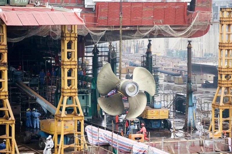 ????廣船國(guó)際自2月10日起復(fù)工復(fù)產(chǎn),其中阿爾及利亞客滾船建造是廣船國(guó)際重點(diǎn)工作之一。廣船國(guó)際先后克服勞動(dòng)力不足和資材供應(yīng)受阻等客觀(guān)困難,逆“疫”而上,確保該船順利出塢。