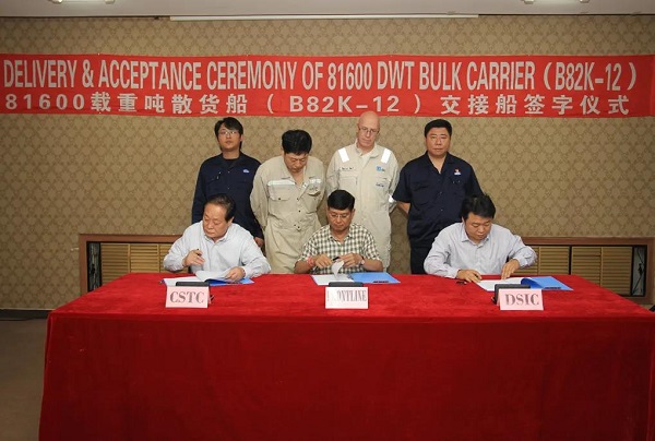 △ 6月10日上午,“GOLDEN FORWARD”號(hào)簽字交付。