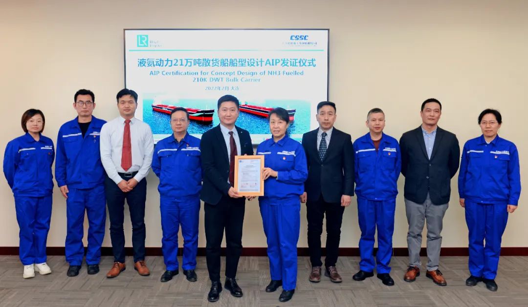 2020年,大船集團研發的液氨動力超大型油船(VLCC)分別取得美國船級社(ABS)和中國船級社(CCS)頒發的AIP證書。