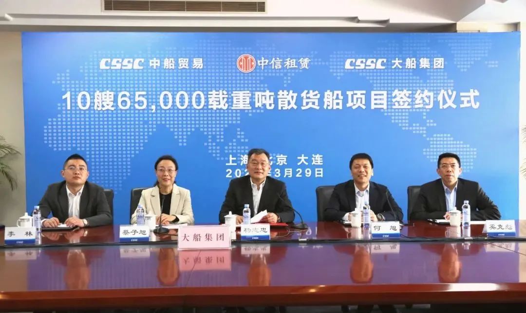 3月29日,中國船舶集團旗下中船貿易聯合大船集團與中信金融租賃有限公司以“云簽約”的形式正式簽署10艘6.5萬噸散貨船新造船合同。該批船舶完工交付后將租賃給國內一流航運公司,服務國家資源能源運輸,主要運營國內沿海航線及長江沿線。