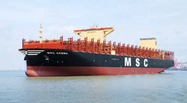 5月22日,中國船舶集團旗下滬東中華聯合中船貿易為工銀金融租賃有限責任公司和瑞士地中海航運公司(MSC)建造的全球最大級別24116TEU超大型集裝箱船系列3號船“地中海 吉瑪”號(MSC  GEMMA),在中船長興造船基地命名交付。這不僅是滬東中華在短短75天時間里完工交付的第3艘同系列船,進一步穩固了其世界超大型集裝箱船建造領域的領軍地位,也成就了MSC成為全球第一家運力突破500萬TEU大關的集裝箱航運公司。