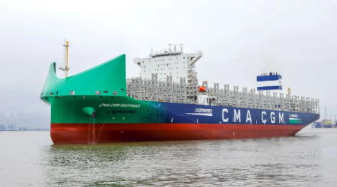 5月23日,由中國船舶集團旗下滬東中華聯(lián)合中船貿(mào)易為法國達飛集團建造的13000TEU液化天然氣(LNG)雙燃料動力集裝箱船系列4號船“CMA CGM SAOPAULO”號,在滬東中華長興島廠區(qū)命名交付。南美洲東海岸航線又將新添一艘中國“智”造的新一代綠色環(huán)保、高效節(jié)能型集裝箱船,為達飛集團箱船船隊綠色轉型發(fā)展貢獻新的中國船舶動能。