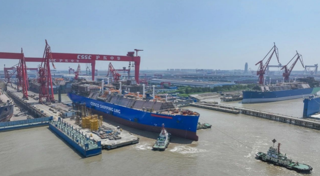 8月9日,中國船舶集團旗下滬東中華3艘第五代LNG船生產(chǎn)節(jié)點告捷,實現(xiàn)2船出塢、1船開工三大生產(chǎn)節(jié)點。