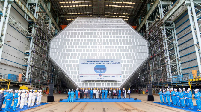 日前,全球最大B型菱形液貨艙在江南造船完工,將被用于世界首制99000立方米超大型液化乙烷運(yùn)輸船(VLEC)。江南造船自主研發(fā)的B型艙 若配置不同的艙體材料和絕緣系統(tǒng)  ,可適用于裝載不同溫度的液化氣貨品。