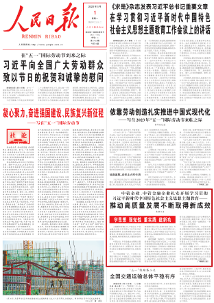 人民日?qǐng)?bào)2023年5月1日頭版刊發(fā)《中管企業(yè)、中管金融企業(yè)扎實(shí)開(kāi)展學(xué)習(xí)貫徹習(xí)近平新時(shí)代中國(guó)特色社會(huì)主義思想主題教育——推動(dòng)高質(zhì)量發(fā)展不斷取得新成效(學(xué)思想 強(qiáng)黨性 重實(shí)踐 建新功)》。文中提到: