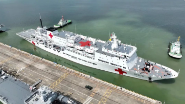 “絲路方舟”號醫(yī)院船羅吉星介紹:“作為一艘醫(yī)院船,它具備靈活的機(jī)動能力,能夠在災(zāi)害發(fā)生第一時(shí)間迅速抵達(dá)災(zāi)害地區(qū),提供醫(yī)療援助服務(wù),還具備多種換乘能力和轉(zhuǎn)移手段,在不具備靠泊條件的災(zāi)害地區(qū)可以通過直升機(jī)和救護(hù)艇,將醫(yī)護(hù)人員和醫(yī)療物資轉(zhuǎn)運(yùn)上岸,或者通過同樣的方式將我們傷病員轉(zhuǎn)運(yùn)至醫(yī)院船進(jìn)行醫(yī)療救治。